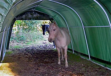 Our instant ez up & down portable horse shelter kits, can easily shelter 2 horses.